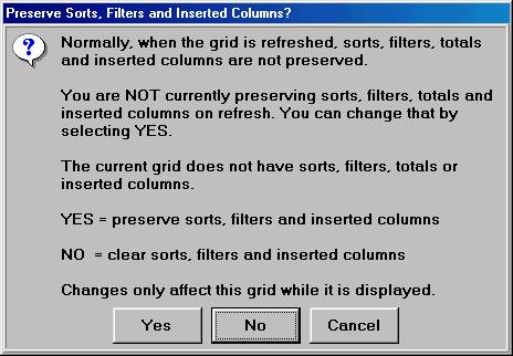 Click Yes to preserve the grid features (sorts, filters, and/or inserted columns).