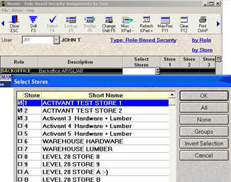 Display the Role-Based Security Assignments by User viewerDisplay the Role-Based Security Assignments by User viewer. Below is an example of the viewer for both single store and multistore.