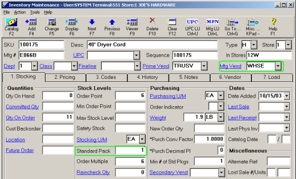 Set the Standard Pack field to the From-store pack quantity. This field is found on the Stocking tab. This field is Master Data, so changing it in one store will change it for all stores that stock the item.